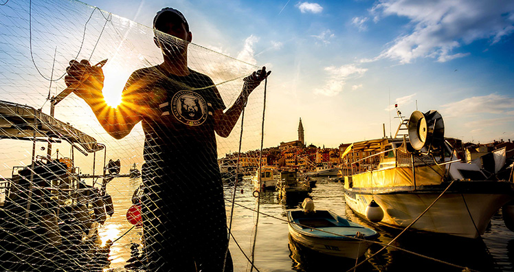 Foto: Auch heute noch können Sie im Rovinjer Hafen einen Fischer sehen, der seine Fischernetze reinigt. © TVB Istrien