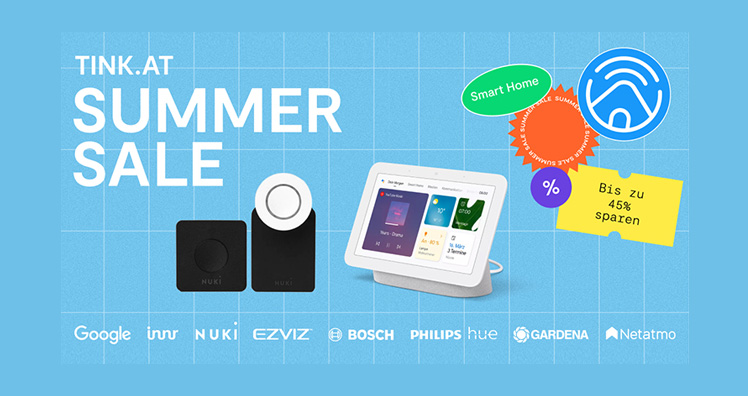 Spannende Neuigkeiten für alle Smart-Home-Freunde und Technikliebhaber: tink.at läutet den Summer Sale 2021 ein. Zahlreiche Premium-Smart-Home-Produkte können zu einem günstigeren Preis erworben werden. Mit dabei sind portable Roam-Smart-Speaker von Sonos, smarte Lampen von Philips Hue, HomeKit-Produkte von Eve, Nest-Speaker von Google sowie elektronische Türschlösser von Nuki.