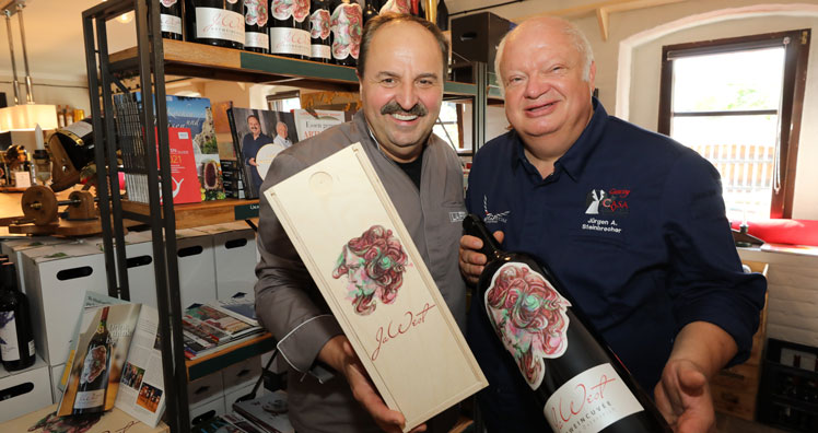 Natürlich wurde nicht nur exzellent gespeist, sondern auch hochkarätige Weine kredenzt. Da in der neuen Vinothek Steinbrecher’s Leidenschaft für deutsche Weißweine viel Platz eingeräumt wird, präsentierten die Spitzenwinzer ihre Weine persönlich: Roman Niewodniczanski vom Weingut Van Volxe, berühmt für außergewöhnliche Rieslinge. August Kesseler vom vielprämierten Weingut Kesseler aus dem Rheingau, das auch den meisten Pinot Noir-Fans ein Begriff ist. Tanja Görgen-Eifel vom traditionsreichen Weingut Eifel-Pfeiffer aus Trittenheim, dem Herzen des Weinbaugebiets Mosel. Zudem wurden auch österreichische Weine angeboten, allen voran jene von Jürgen Steinbrecher’s eigener Weinserie "Ja West", die im Vorjahr mit dem Jahrgang 2017 erstmals präsentiert wurde.