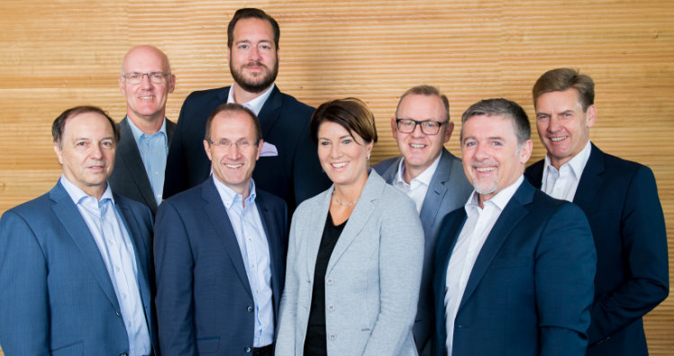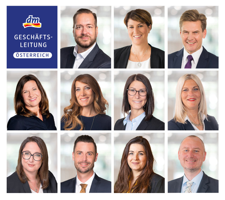 Harald Bauer (Geschäftsführung), Petra Mathi-Kogelnik (Geschäftsführung), Thomas Köck (Geschäftsführung), Verena Eder (Regionsleitung Ost), Andrea Hiotu (Regionsleitung Nord), Silvia Auer (Regionsleitung West), Hannelore Weihrauch (Regionsleitung Süd-Ost), Kerstin Ebenführer (Ressortleitung Mitarbeiter), Christian Freischlager (Ressortleitung Marketing und Einkauf), Petra Gruber (Ressortleitung Marketing und Einkauf), Michael Cermak (Ressortleitung Expansion) © dm/Marco Riebler/Kneidinger Photography