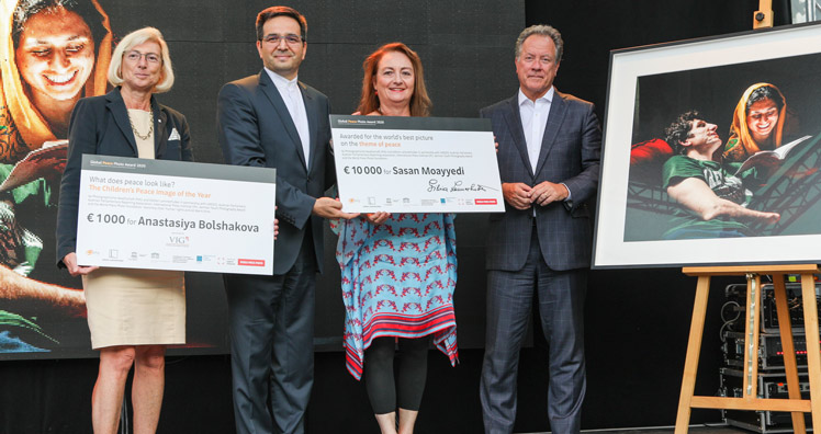Als Friedensbild 2020 kürte die Jury "Love Story" von Sasan Moayyedi (Iran). Dieses zeigt auf berührende Weise das Leben eines jungen Mannes, nachdem er beide Hände, Füße und Augen durch eine Tretmine verloren hat. Das Kinderfriedensbild 2020 ging an Anastasiya Bolshakov (Russland) für ihr Bild "Flight of the Soul" - eine Liebeserklärung an den Sommer. In ihrer Laudatio betonte Elisabeth Stadler, Chief Executive der Vienna Insurance Group, dass Kinder die Welt aus einem anderen Blickwinkel betrachten würden und uns damit viel sagen könnten. Darauf sollten Erwachsene öfter hören, zeigte Stadler sich überzeugt.