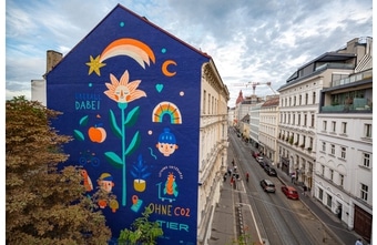 Anlässlich des Autofreien Tages gestalteten "Tier" und die Werbeagentur Warda Network gemeinsam mit Künstlerin Frau Isa eine 240 Quadratmeter große Wand in Wien-Neubau um.