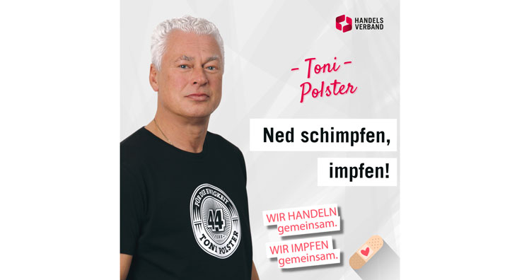 Die Initiative wird sowohl von Bundeskanzler Sebastian Kurz und Gesundheitsminister Wolfgang Mückstein als auch von führenden Gesundheitsexpert:innen wie Ärztekammer-Präsident Thomas Szekeres und dem Virologen Norbert Nowotny unterstützt, ebenso von Vertreter:innen der Bundesländer und Gemeinden sowie von den heimischen Einkaufszentren und zahlreichen weiteren Partnern. Prominente Unterstützung kommt nun auch von der Fußball-Legende Toni Polster. "Ned schimpfen, impfen. Die Corona-Impfung schützt vor schweren Krankheitsverläufen und reduziert das Risiko auf Langzeitfolgen erheblich. Daher unterstütze ich die Kampagne des österreichischen Handels", so Toni Polster.