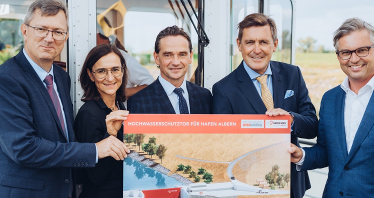 Wien Holding-Chef Kurt Gollowitzer: "In den letzten zehn Jahren wurde bereits konsequent in den Hafenausbau, die Digitalisierung und in die Modernisierung der Umschlagseinrichtungen investiert. Der Hafen Wien mit dem Hafen Freudenau, dem Ölhafen Lobau und dem Hafen Albern, ist jetzt schon zentrale Drehscheibe, wesentlicher Logistikknotenpunkt für den Großraum Wien und ein attraktiver Standort für rund 100 angesiedelte Unternehmen mit deren 5.000 Mitarbeiterinnen und Mitarbeiter. Mit der Errichtung des Hafentors im Bereich Albern erreichen wir nun den nächsten Meilenstein. Vom Hochwasserschutztor profitiert nicht nur der Hafen Wien selbst, sondern auch die rund 20 Unternehmen mit ihren etwa 100 Beschäftigten, die sich derzeit im Hafen Albern angesiedelt haben."