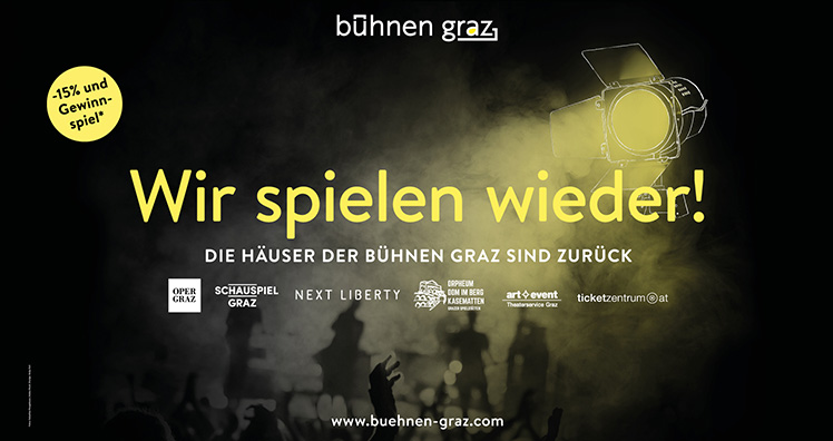 Die Häuser der Bühnen Graz sind zurück mit einem ebenso hervorragenden, wie auch umfangreichen Programm in Oper Graz, Schauspielhaus Graz, Next Liberty und den Grazer Spielstätten. Die Saison 21/22 setzt sich aus zahlreichen Produktionen zusammen, die das Publikum zum Lachen, Weinen, Rocken oder Staunen bringen und in jedem Fall berühren werden.