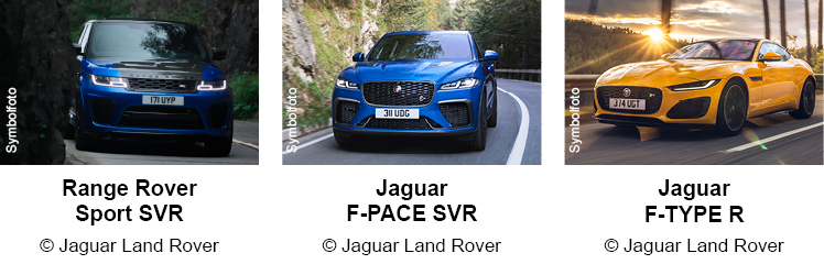 Wählen Sie zwischen den Modellen Range Rover Sport SVR, Jaguar F-PACE SVR und Jaguar F-TYPE R.