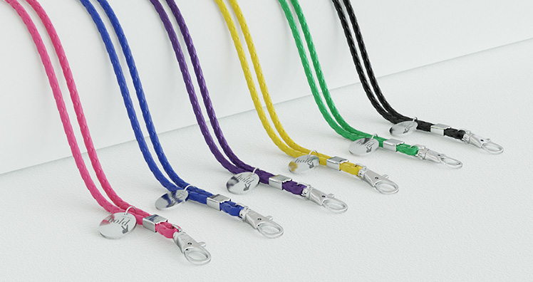 Die HOLDIE Maskenbänder sind aus einem öko-freundlichen, nicht toxischen und reißfesten Lederimitat gefertigt. Am Ende des Bandes befindet sich ein kleiner Metallkarabiner an den sich die Maske direkt anbringen lässt. Das besonders leichte Lederband fühlt sich seidig an und die körpereigene Wärme macht es besonders anschmiegsam.
