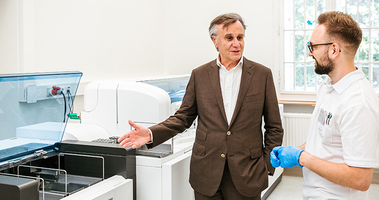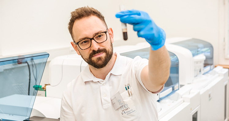 Das High-Tech Labor der Lifebrain-Gruppe auf der Baumartner Höhe in 1140 Wien hat sich neben PCR-Tests für das Alles gurgelt! Programm auch auf Antikörpertests spezialisiert. Nach einer Blutabnahme – zum Beispiel durch die medizinisch geschulten Fachkräfte an einem der Lifebrain Teststandorte – wird die Blutprobe im Labor mit einem auf höchst zuverlässige Ergebnisse und rasche, vollautomatisierte Analyseprozesse ausgerichteten State-of-the-Art Analysegerät (Roche cobas pro) untersucht.