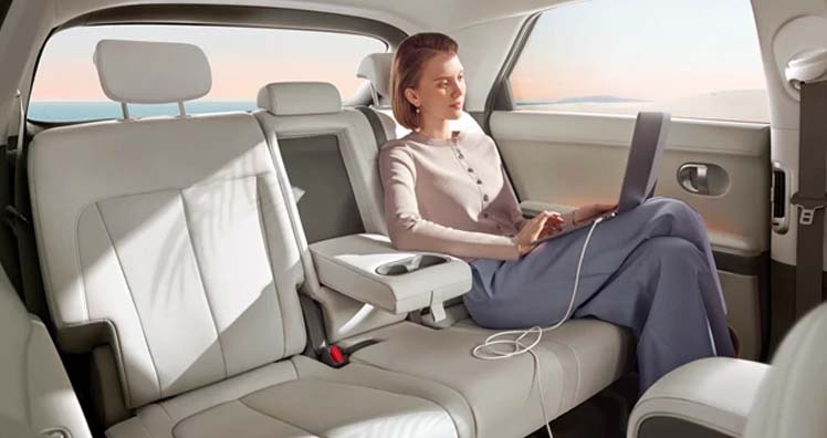Die innovative Vehicle to Load (V2L)-Funktion, ermöglicht es, beliebig elektrisch betriebene Fahrzeuge und Geräte, wie z.B. Elektrofahrräder, Scooter, Elektrogriller, Kaffeemaschine, Laptops etc. unterweg zu laden oder zu nutzen. Die V2L-Funktion kann bis zu 3,6 kW Leistung liefern. Der Anschluss befindet sich unter den Sitzen der zweiten Reihe sowie neben dem Ladeanschluss an der Fahrzeugaußenseite.