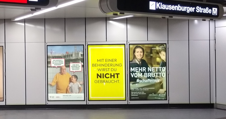 "Mit einer Behinderung wirst du NICHT gebraucht", war in den vergangenen Tagen vermehrt auf Plakatwänden zu lesen. Wer hinter der Kampagne steckt, war hingegen nicht ersichtlich, da es dazu keine Hinweise auf den Plakaten gibt. Bei Behindertenvertretern sind die Sujets jedenfalls auf Ablehnung gestoßen.
