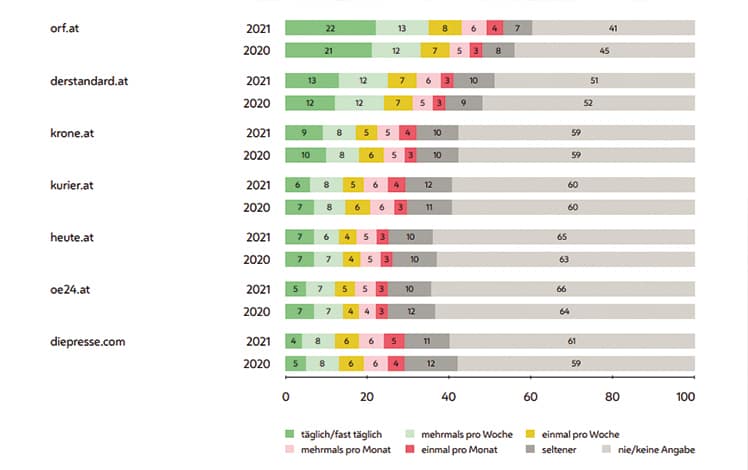 Der unangefochtene Platzhirsch bleibt in dieser Kategorie übrigens orf.at. Beinahe jede:r vierte Wiener:in informiert sich hier einmal täglich.