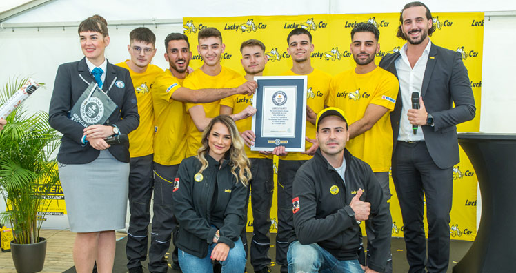 Den schnellsten Reifenwechsel auf diesem Planeten können Autobesitzer künftig in Österreich machen lassen. 49:03 Sekunden – Eine Zeit, die nicht nur so manche Formel 1-Boxencrew neidisch machen dürfte, sondern die auch einen neuen Weltrekord darstellt. So kurz brauchte eine Lehrlingsmannschaft von Lucky Car, Österreichs größter vertragsfreier KFZ-Werkstätte, für den Wechsel aller vier Reifen an einem PKW.