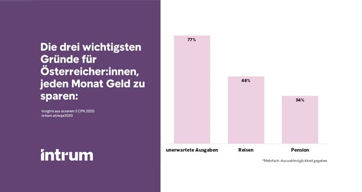Ein entscheidender Indikator wie die Menschen in Europa und besonders mit dem Thema Geld und Sparen umgehen ist der European Consumer Payment Report (ECPR). Jedes Jahr wird von INTRUM der European Consumer Payment Report durgeführt. Bei der letzten Umfrage wurde unter anderen das Thema „Was sind Ihre wichtigsten Gründe, um jeden Monat Geld zu sparen?“ abgefragt (siehe Grafik oben).