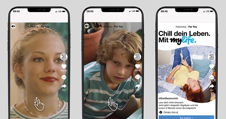 Für die "MyLife" Jugendtarif-Kampagne war Drei auf der Suche nach neuartigen, mobilen Werbeformaten, passend für die Generation Z – und wurde bei Goldbach Austria fündig. Ziel war es, die junge Generation damit außerhalb ihrer Social-Media-Kanäle, aber trotzdem im gewohnten Look und mit vertrauter Bedienung erreichen zu können.