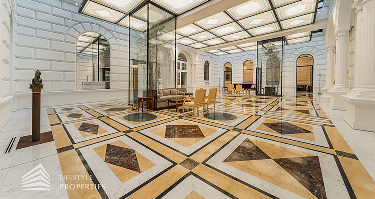 Die stilvolle Wohnung befindet sich im 3. Liftstock eines wunderschönen Palais und bietet eine Wohnfläche von ca. 180,44 m². Die Immobilie wird inklusive hochwertiger Möblierung (exkl. Kunst und Skulpturen) samt zwei Garagenplätzen verkauft.