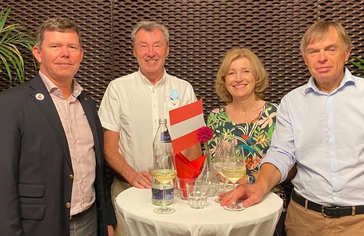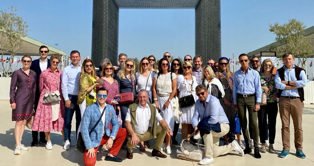 Richard Bandera, österreichischer Wirtschaftsdelegierter für den arabischen Raum, lud die österreichischen Wirtschaftstreibenden zu einem Empfang in den Österreich-Pavillon. Dieser erinnert an arabische Urzeit-Lehmhöhlen und lässt das Thema der Weltausstellung "Nachhaltigkeit und Zusammengehörigkeit" nur schwer erahnen. Würde man im Land der Wüste eine Wasserverkostung aus den Seen Österreichs anbieten und darauf hinweisen, dass in Österreich mit Wasser Strom produziert wird, so würde man die Millionen an Besucher:innen der Weltausstellung wahrscheinlich mehr beeindrucken.