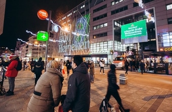 350 Quadratmeter Fassadenprojektion und 26 Quadratmeter LED-Wallscreen werden täglich von 120.000 Menschen gesehen.
