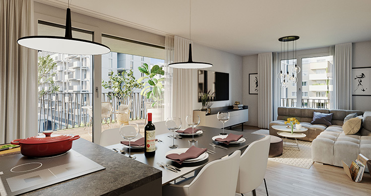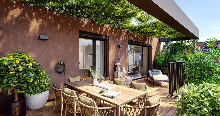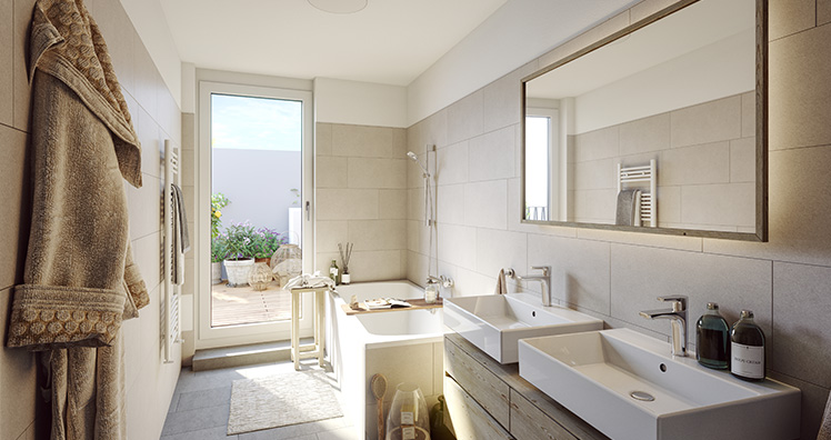 Im ATTEMSGARTEN finden Sie großzügige Familienwohnungen, aber auch ganz kleine Wohnungen. Überdurchschnittlich große Balkone und Terrassen mit eingebauten Pflanztrögen verschaffen Ihnen Freiraum und erweitern jede Wohnung ins Grüne.