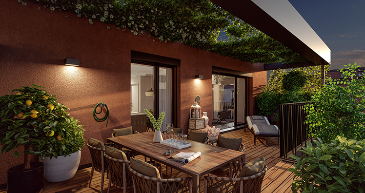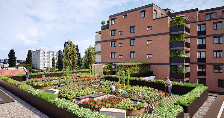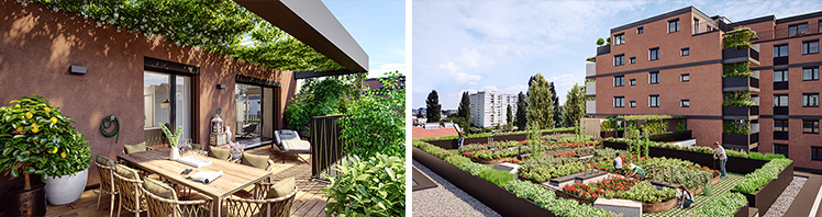 Das Thema Grün ist im ATTEMSGARTEN überaus wichtig. Das Grundstück war immer grün und ist von Grün umgeben. Darum war es wichtig, dass sich das Projekt gut einfügt. Deshalb entstehen zahlreiche Pflanztröge auf den großen Balkonen und Terrassen und es werden lauschige Dachgärten für Urban Gardening verwirklicht.