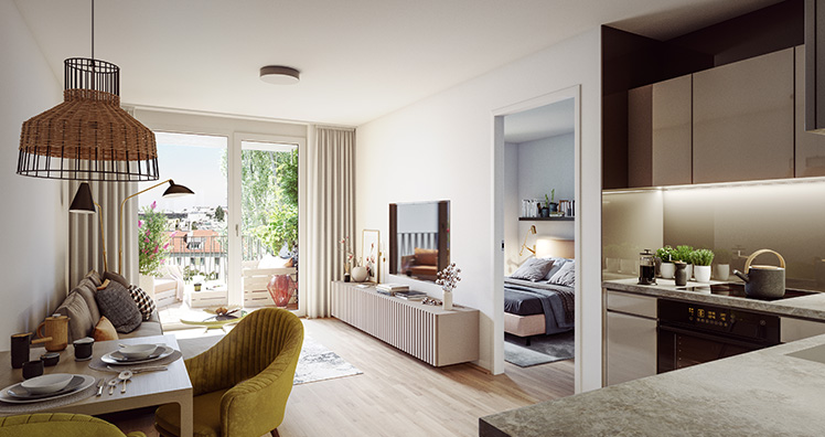 Die grüne Wohnoase entsteht im Zentrum des 22. Bezirks und bietet für jeden Wunsch das perfekte Zuhause. Hier soll die Natur mit einziehen – dazu laden z.B. die einzigartigen Dachgärten ein. Die Lage fußläufig zum Donauzentrum ermöglicht einen entspannten Alltag – damit mehr Zeit bleibt für die wesentlichen Dinge des Lebens.