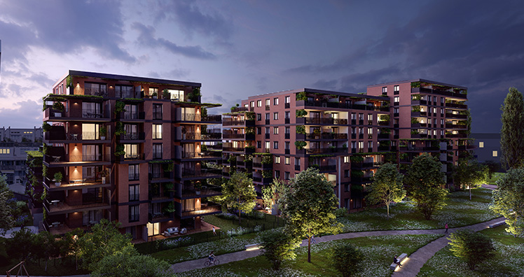 Die zentrale Idee war es, eine grüne Insel der Ruhe für moderne Menschen zu schaffen, die in der Stadt leben. Ein Zuhause, in dem man sich wohlfühlt und gerne lebt. Ein Eigenheim, ideal um eine Familie zu gründen und Kinder großzuziehen. Ein Ort, an dem alles richtig praktisch ist, damit Ihnen der Alltag leichtfällt.