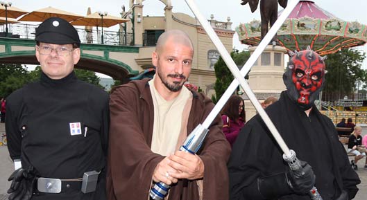 Darth Vader, Stormtrooper, Jedi und viele andere verkleidete Star Wars-Charaktere haben sich zum ersten "Science Fiction Day" im Prater versammelt. Programmhöhepunkte waren zwei Kostüm-Paraden vom Wurstelplatz zum Riesenradplatz sowie Showkämpfe zwischen den beiden Star Wars Fanclubs "Rebel Legion" und "501st Legion", die das Event ins Leben gerufen haben. Der Erlös des ersten Science Fiction Days kommt der Make a wish-Foundation zugute, die schwer kranken Kindern Wünsche erfüllt.