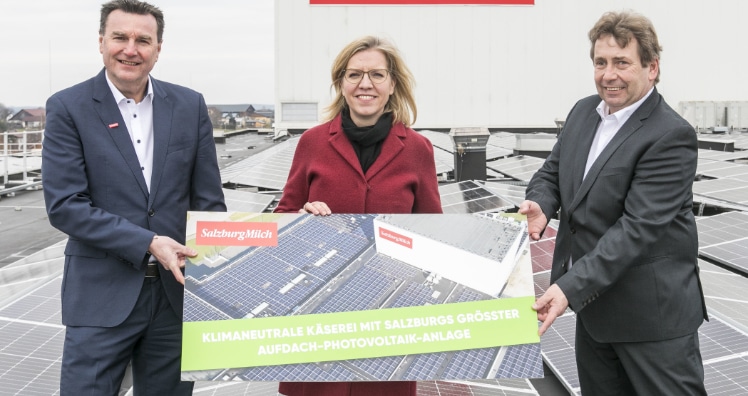 Das drittgrößte Molkereiunternehmen Österreichs, das eine internationale Alleinstellung im Bereich der Spezialmilchsorten inne hat, ist seit Langem engagiert, mit einer Vielzahl an Maßnahmen den CO2-Fußabdruck der SalzburgMilch so gering wie möglich zu halten. Daher wurde beispielsweise im letzten Jahr auf dem Dach der Käserei in Lamprechtshausen die größte Aufdach-Photovoltaikanlage des Bundeslands Salzburg errichtet. Sie erzeugt jährlich so viel elektrische Energie, wie rund 460 Privathaushalte verbrauchen.