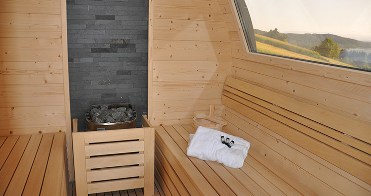 Komplettiert wird die Luxus-Aussicht durch die Luxus-Ausstattung: Auf der knapp 200 m2 großen Panorama-Terrasse, die mit Airplay-Beschallung und Infrarot Heizung ausgestattet ist, geht man ein paar Meter zur großen Fass-Sauna mit Panoramafenster, für bis zu 8 Personen. Anschließend springt man in den 8 x 4 Meter großen Infinity-Pool, der selbstverständlich beheizt ist.