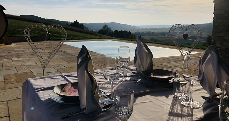 "Durch die Luxus-Aussicht, wussten mein Mann und ich, dass wir auch bei der Revitalisierung des 150 Jahre alten Bauernhofes den gleichen Luxus-Anspruch stellen mussten, sonst ist das Luxus-Hideaway nicht stimmig. Von der Landvilla überblickt man durch den grandiosen 270 Grad-Blick die gesamte Ost-, Süd-, und Weststeiermark, vom Gleichenbergerkogel, Straden, dem südsteirischen Wein- und Hügelland bis hin zu den Kärntner Alpenausläufern.