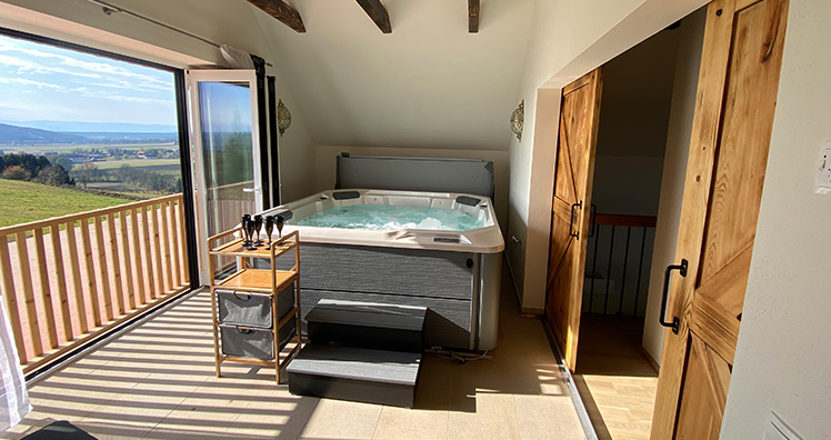 Am Abend genießt man den Sauvignon entweder auf der Terrasse, oder die anderen vielen guten Weine, Moste, Biere und Schnäpse in der hauseigenen – gut sortierten – Vinothek, des restaurierten 150 Jahre alten Weinkellers. Und bei Schlechtwetter oder an kalten Herbst- und Wintertagen, schlürft Mann bzw. Frau den südsteirischen Frizzante im Whirlpool für bis zu 6 Personen, natürlich auch mit Traumaussicht und komplett zu öffnender 3 Meter langen Falttür.