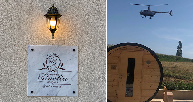 Gerade erst vor ein paar Monaten eröffnet, entwickelt sich das Luxusdomizil bereits in der ersten Saison zu "DEM" Geheimtipp in der Südsteiermark. "Die Erklärung ist einfach", sagt Cornelia Wurzinger, Besitzer- und Gastgeberin der Landvilla Sinelia premium, "in der Süd- und Oststeiermark gibt es inzwischen viele Hotspots und dadurch lassen sich Auto- und Menschenansammlungen in diesen Regionen nun mal nicht vermeiden. Durch unsere komplette Alleinlage muss man Menschen und Autos suchen gehen, und das in der Südsteiermark. Vorher trifft man bei uns eher Hasen, Rehe, oder Falken, die bei der Villa am Waldrand vorbeilaufen- oder fliegen…"