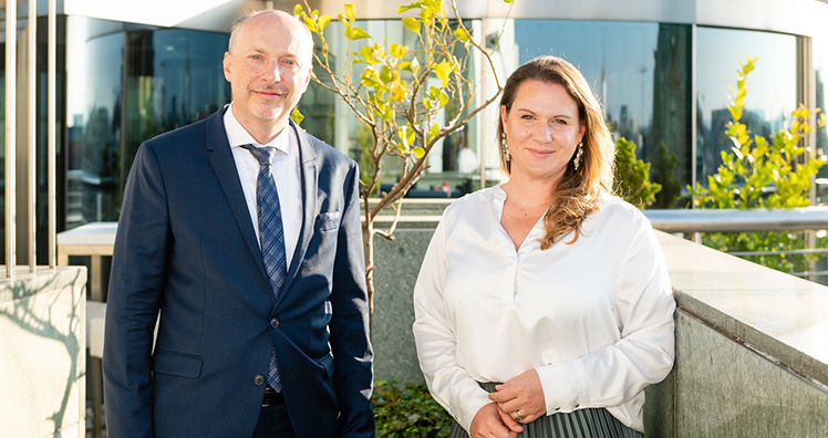 Prok. Stefan Lechner, KURIER Gesamtanzeigenleitung und Elisabeth Laimighofer, KURIER Anzeigenleitung freuen sich über die Wachstumserfolge des KURIER in diesen herausfordernden Zeiten.