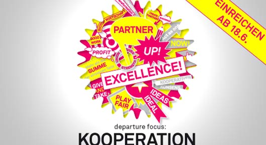 Mit dem Themencall "Kooperation" schlägt departure, die Kreativagentur der Stadt, einen neuen Weg ein. Ziel ist, die Zusammenarbeit zwischen Kreativ- und Wirtschaftsunternehmen gezielt zu fördern und zu unterstützen. Erstmals wird dieser Call gemeinsam mit der Wirtschaftsagentur Wien abgewickelt. "Mit dem Call erhalten Kreativunternehmen einen verbesserten Zugang zu Produktion und Vertrieb, und Unternehmen der klassischen Wirtschaft finden Zugang zu neuen, kreativen Lösungen. Damit profitieren auch die Wiener, weil Innovationen als Motor für die gesamte Wiener Wirtschaft und damit auch für unsere Arbeitsplätze der Zukunft dienen können", ist Vizebürgermeisterin, Finanz- und Wirtschaftsstadträtin Renate Brauner überzeugt. Dafür stehen Fördermittel in der Höhe von insgesamt 1,5 Millionen Euro zur Verfügung. Um den Kontakt zwischen Kreativen und Wirtschaft herzustellen, werden erstmals sogenannte Door-Opener (Vermittler) eingesetzt. Zum Themencall "focus Kooperation" eingereicht werden kann bis 1. Oktober 2012.