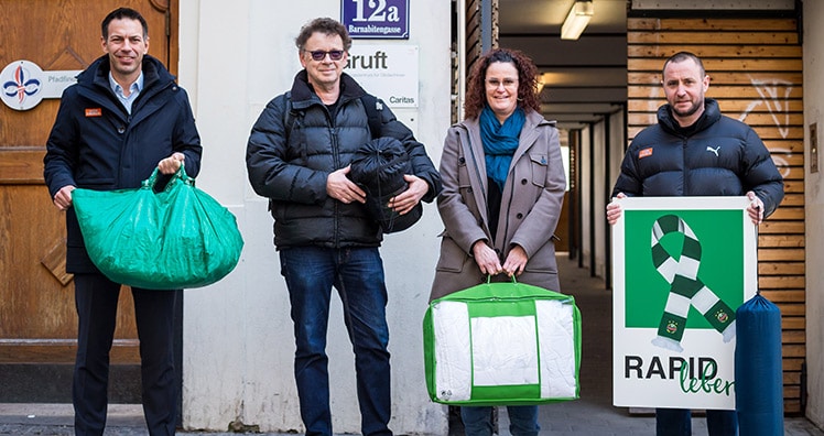 In der Vergangenheit holten Spieler, Betreuer:innen und Funktionär:innen des SK Rapid die Sachspenden persönlich von den Rapid-Fans ab. Aufgrund der epidemiologischen Gesamtsituation konnten wärmende Utensilien heuer in allen drei SK Rapid Fanshops abgegeben werden. Die gesammelten Gegenstände wurden nun symbolisch von Sportkoordinator und Ehrenkapitän des SK Rapid, Steffen Hofmann, und Geschäftsführer Wirtschaft des SK Rapid, Christoph Peschek, an die Wiener Gruft übergeben.