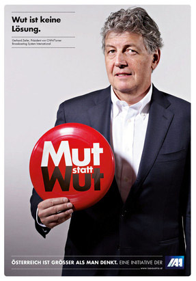 Unter dem Motto "Österreich ist größer, als man denkt" ermutigen bekannte Österreicher wie Life Ball Organisator Gery Keszler, Desiree Treichl-Stürgkh - Home und Opernball, Attila Dogudan - Do&Co sowie Gerhard Zeiler - CNN/Turner Broadcasting System International zu "Mut zu Mehr". Die Kampagne wird Print, Außenwerbung, Online, TV und Radio umfassen. Der erste Plakat-Durchgang wird dieser Tage affichiert.