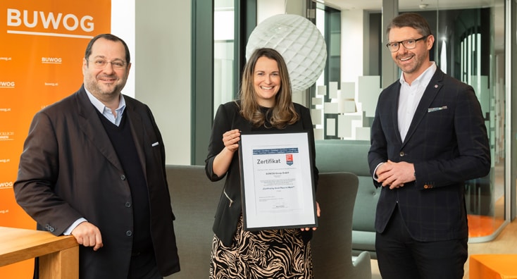 Erfreuliches Ergebnis für die Buwog: Nach einer Mitarbeitendenbefragung im Herbst 2021 durch das Forschungs- und Beratungsinstitut Great Place to Work wurde das Immobilienunternehmen nun als solcher zertifiziert. Damit werden die Aktivitäten und Qualitäten der BUWOG als Arbeitgeberin ausgezeichnet. "Es erfüllt mich mit Stolz, dass unsere Mitarbeiter:innen unser konsequentes Engagement, uns im Hinblick auf Arbeitsumfeld und Mitarbeiter:innenzufriedenheit laufend zu verbessern, so positiv bewertet haben. Die Anerkennung und Wertschätzung, die uns vom gesamten Team entgegen gebracht werden zeigen uns, dass wir gemeinsam auf dem richtigen Weg sind," erklärt Kevin Töpfer, Geschäftsführer der BUWOG Group GmbH. Dies zeige sich auch in der besonders hohen Teilnahmequote von 92 Prozent.