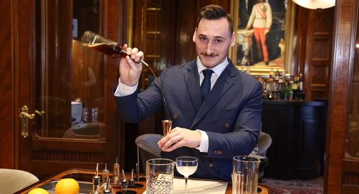 Wie bei der Eröffnungsfeier zu sehen war, ist allein schon die Art und Weise, wie Holzer die Drinks vor den Gästen zubereitet, ein Genuss. Wenn der Profi zu Bunsenbrenner, Glas-Syphon und Schlagobers greift, werden die Augen der Gäste immer größer. Zudem gibt es einen fahrbaren Manhattan-Trolley, der eigens für die Bar im Park Hyatt Vienna angefertigt wurde. (ts)