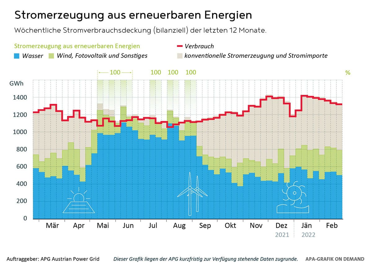 Durch die Wetterlage im Februar und die damit verbundene gute Stromerzeugung aus Windenergie konnten die Windhochburgen des Landes – Niederösterreich und das Burgenland – ein Vielfaches an Energieüberschuss erzeugen und über das APG Netz österreichweit zur Verfügung stellen. Das Burgenland konnte mit rund 231 GWh fast zehn Mal so viel Strom in das überregionale Netz der APG rückspeisen als es selbst davon beziehen musste (rund 24 GWh). Niederösterreich war es möglich, rund 266 GWh in das überregionale Netz einzuspeisen. Das entspricht gut der vierfachen Energiemenge, die das Bundesland aus dem APG Netz entnehmen musste (rund 63 GWh). Größter Strombezieher aus dem APG Netz war Kärnten (rund 286 GWh), dicht gefolgt von der Steiermark (rund 281 GWh).