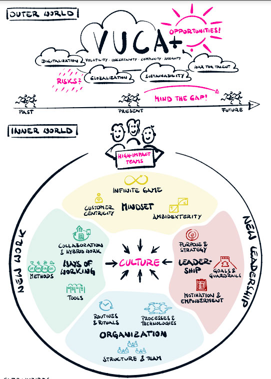 "Rundherum herrschen zudem Unsicherheit und Komplexität", so Hauser weiter. Expert:innen sprechen von "VUCA", ein Akronym, das auf "volatility" ("Volatilität"), "uncertainty" ("Unsicherheit"), "complexity" ("Komplexität") und "ambiguity" ("Mehrdeutigkeit") beruht. Im Podcast erläutert sie, welche Ansätze New Work bietet, um auf dem Weg zur zukunftsfähigen Organisation dem Wettbewerb einen Schritt voraus zu sein.