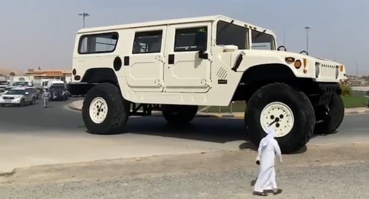 Ein "neuer" Hummer, der ziemlich sicher einen Eintrag in die Geschichtsbücher bekommen wird, ist der H1 X3. Dabei handelt es sich um ein Unikat, das sich der superreiche Scheich Hamad bin Hamdan Al Nahyan anfertigen ließ. Die Zusatzbezeichnung X3 ist dabei Programm – denn dieser Hummer ist dreimal so groß wie der originale H1.