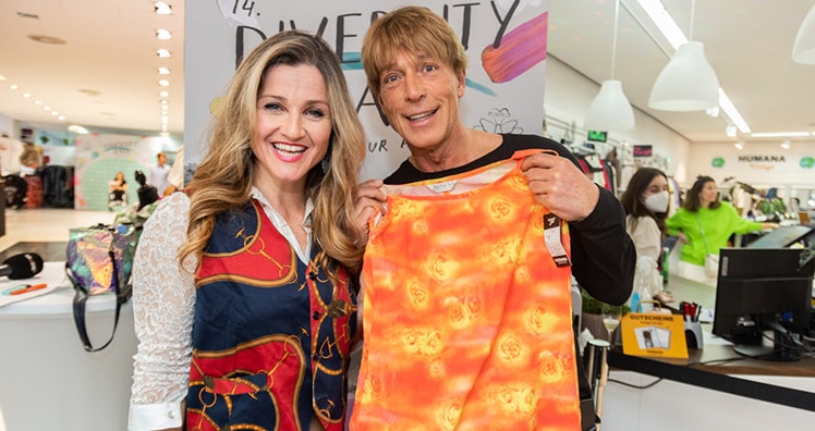 "Ballmutter" Monika Haider und Diversity Ball-Organisator Darko Markovic luden Dienstagabend zur Ballpräsentation der besonderen Art ein. Schauplatz des Geschehens war diesmal die Humana-Filiale in der Gumpendorferstrasse, die kurzerhand zum Laufsteg avancierte. Die Idee: Gemeinsam mit Kooperations-Partner Humana im Sinne der Nachhaltigkeit Ball-Outfits zu lancieren, die eben nicht neu gekauft werden. Sondern Second-Hand. Die bekannten Stylisten und Fashion-Profis Nina Goguadze Zayed und Mio Paternoss stellten aus dem großen Humana-Sortiment bunte, stilvolle und nachhaltige Ball-Outfits zusammen.