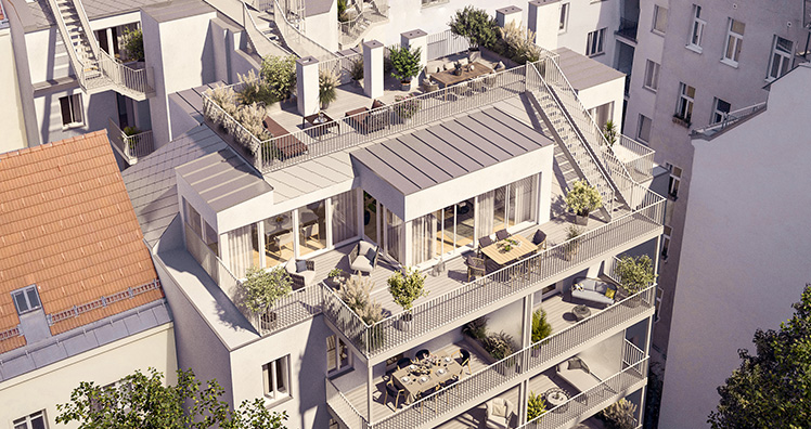 26 exklusive Eigentumswohnungen, davon drei luxuriöse und großzügige Penthouses, entstehen derzeit in der Petzvalgasse im 4. Wiener Gemeindebezirk. Unter dem Projekttitel "The Core" entwickelt und revitalisiert der Bauträger 3SI Immogroup einen weiteren historischen Stilaltbau Wiens. Hofseitig werden, wie bei allen Immobilien des Zinshausentwicklers, wo bautechnisch möglich, großzügige Freiflächen in Form von Balkonen und Terrassen errichtet.