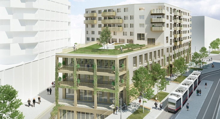 Die HausWirtschaft im Nordbahnviertel; Blick: Bruno-Marek-Allee/Taborstraße © Die HausWirtschaft/einszueins Architektur