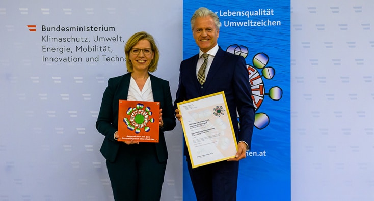 Ende April war es so weit und das Zertifikat wurde in feierlichem Rahmen im Bundesministerium für Klimaschutz, Umwelt, Energie, Mobilität, Innovation und Technologie von Bundesministerin Leonore Gewessler an Michael Miskarik, Leiter der HDI Lebensversicherung in Österreich, überreicht.