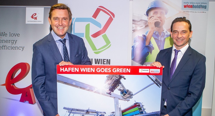 Der Gesamtenergieverbrauch von Hafen Wien und WienCont liegt laut Eigenangaben bei 8.967 MWh pro Jahr (4.571 MWh/Jahr bei Hafen Wien sowie 4.396 MWh/Jahr bei WienCont). Beide Unternehmen konnten in Summe 1.312 MWh fossile Energie im Jahr 2019 durch erneuerbare Energie ersetzen. Über alle Standorte zusammen liege der Anteil der erneuerbaren Energien derzeit bei 25 Prozent (Hafen Wien: 20 Prozent, WienCont: 30 Prozent). Das entspreche im Vergleich zu einem jährlichen österreichischen pro-Kopf-Energieverbrauch von 38 MWh (BMK, 2020 und Statistik Austria, 2019) etwa dem Energieverbrauch von 236 Österreicher:innen.