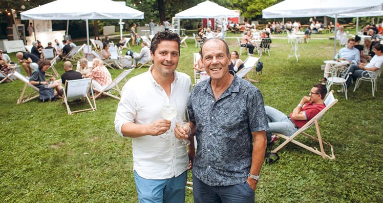 Die Bars sind im Park verteilt, auf der Wiese stehen Gartenmöbel und Liegestühle, getafelt kann aber auch im Biergarten-Bereich oder zwanglos auf Picknickdecken werden. Sollte das Wetter einmal nicht mitspielen, gibt es laut Veranstalter keinen Grund zur Panik: Unter dem Dach der Lounge von Strohboid soll jedes Sakko trocken.