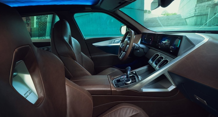 Das auf den Fahrer ausgerichtete Cockpit-Layout orientiert sich stark am Elektro-Flaggschiff iX . Hier gibt es zwei unter einem gemeinsamen, gebogenen Glaspanel sitzende Displays: das digitale Kombiinstrument und der Touchscreen für das Infotainmentsystem. Letzteres kann auch über den iDrive-Controller (Dreh/Drücksteller auf der Mittelkonsole), über die Lenkradtasten oder per Sprache bedient werden. Natürlich ist der XM stets online, bekommt Software-Updates „over the air", integriert Smartphones kabellos, liefert Navidaten mit Echtzeitinfos, kann Handys induktiv aufladen und ermögliche den Fernzugriff auf Fahrzeugdaten via Smartphone-App. Hinzu kommen ein Head-up-Display sowie ein Anzeigenstil, der auf die drei charakteristischen M Farben setzt.