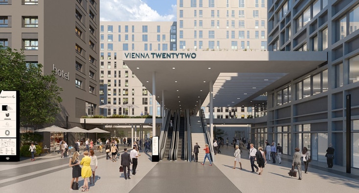 Das Vienna Twentytwo – geplant von Delugan Meissl Associated Architects – besteht aus insgesamt sechs Objekten und einer verbindenden Erdgeschosszone im Norden Wiens. Das Stadtentwicklungsprojekt wird in zwei Phasen realisiert und verfügt über einen Nutzungsmix aus Wohnen, Büro, Hotel, Gastronomie und bedarfsorientierter Nahversorgung. Die erste Phase mit dem 110 Meter hohen Wohnturm, Bassena Hotel, Serviced Apartments und der neuen Bezirksvorstehung ist in Fertigstellung. In den kommenden Wochen beginnen laut dem Bauträger die ersten Übergaben an die Nutzer.innen.