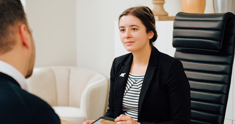 Filialleiterin Theresa berät in Vorsorgethemen © Bestattung Himmelblau/Daniel Willinger