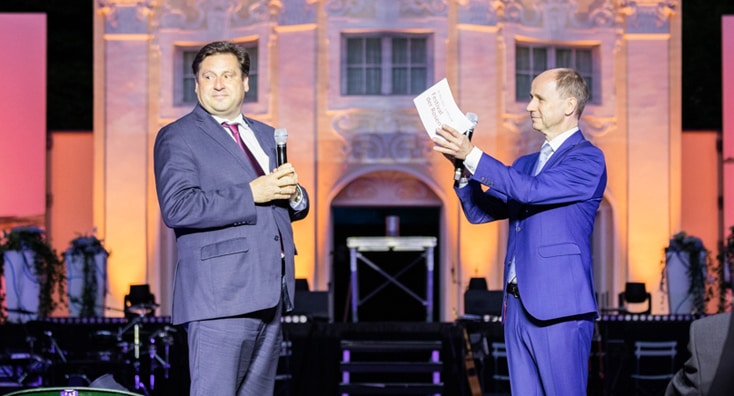 Herbert Fischerauer führte das Publikum gekonnt durch den Abend und sorgte mit Kurz-Portraits aller 11 Great Spa Towns of Europe dafür, dass die Bilder, die stimmungsvoll an die Fassade der Orangerie projiziert wurden, mit Leben gefüllt wurden.